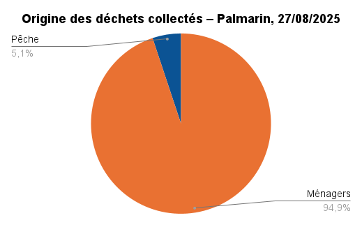La campagne du 27 août 2025 constitue le premier suivi participatif à Palmarin, servant d’état initial de référence pour ce site. La collecte a été réalisée par les observateurs locaux, sous la supervision de l’équipe de l’assistance technique, qui a ensuite validé les données dans le cadre de la mise en place de l’ONL. Au total, plus de 190 kg de déchets ont été collectés lors de cette première opération.